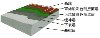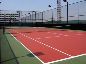 這是一種現(xiàn)場澆鋪用刮板制作在瀝青混凝土上或鋼盤混凝土結(jié)構(gòu)地面上的新型材,其工藝主要分為找平結(jié)合層、加強(qiáng)層、耐磨層等多層做法,還有含膠粒的多層做法這種面層材料及工藝的優(yōu)點(diǎn)是平整度高、表面硬度高、耐磨、抗曬、色澤鮮艷、使用壽命長便于管理和維修。這種面層材質(zhì)穩(wěn)定的網(wǎng)球場近年來已開始在世界各地普遍采用,管它球速稍快,較之其它類型球場,球的彈跳平衡,球員場上跑動舒服,是一種既可供娛樂打球也可用做正規(guī)比賽的高檔次網(wǎng)球場地